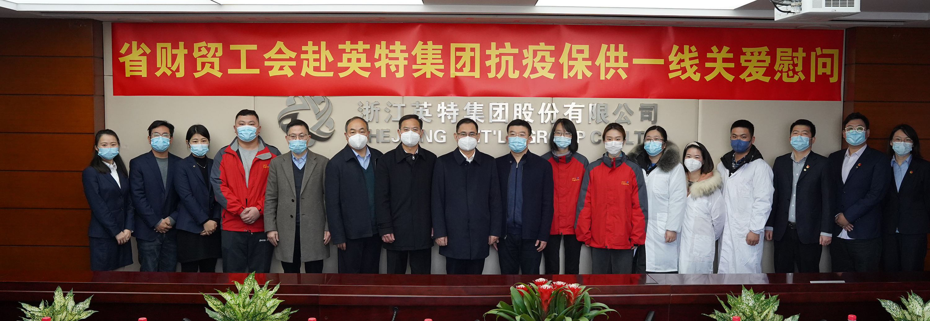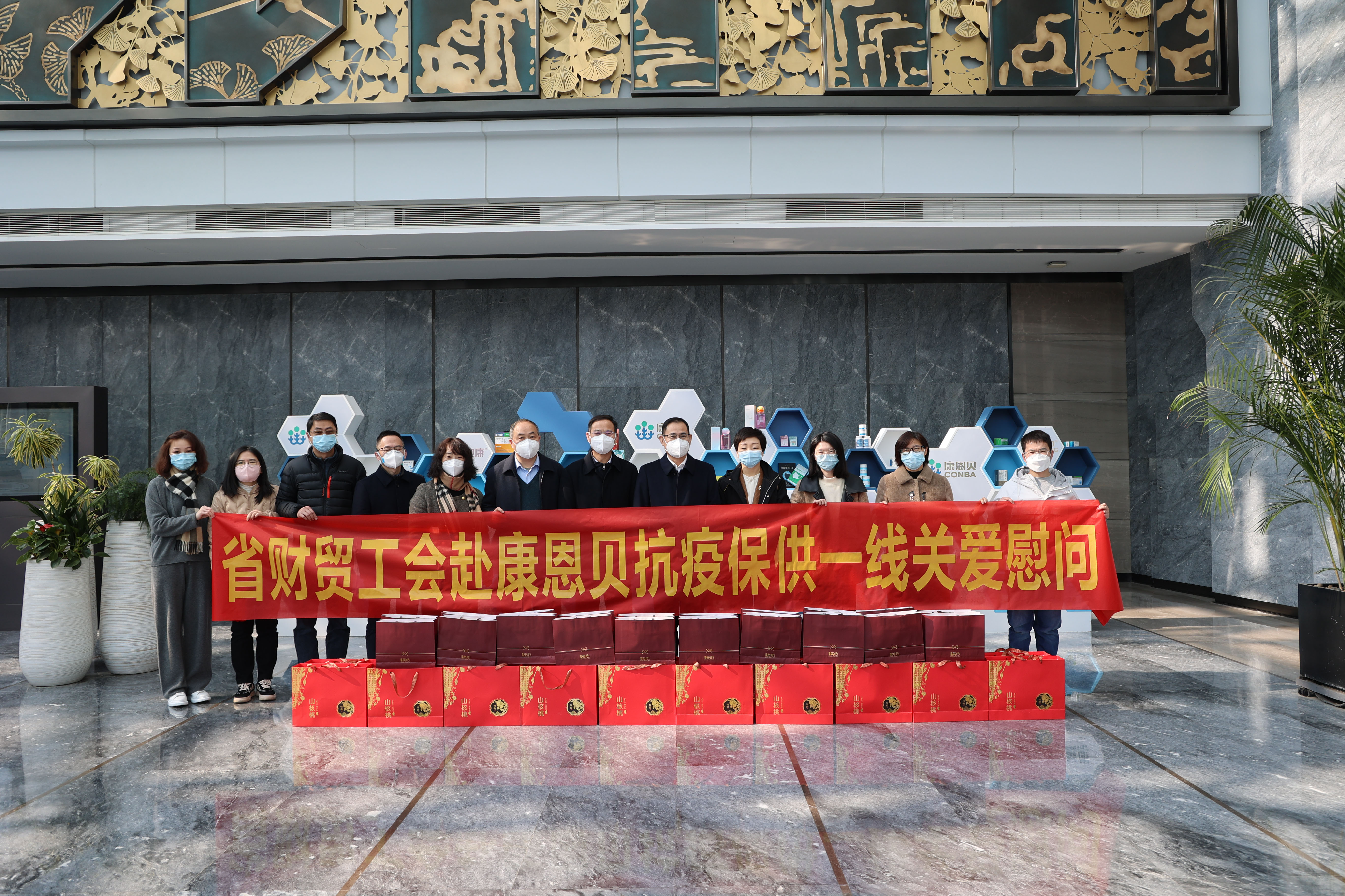 疫情當(dāng)前,暖心慰問。1月6日上午,浙江省財(cái)貿(mào)工會(huì)主席許以平一行到省國貿(mào)集團(tuán)下屬英特集團(tuán)、康恩貝股份慰問堅(jiān)守一線崗位的職工,并實(shí)地調(diào)研防疫產(chǎn)品生產(chǎn)保供工作。省國貿(mào)集團(tuán)黨委副書記、董事鄭偉,工會(huì)辦公室人員陪同,英特集團(tuán)黨委書記、董事長應(yīng)徐頡,康恩貝股份黨委書記、副董事長應(yīng)春曉及相關(guān)部門負(fù)責(zé)人隨行。