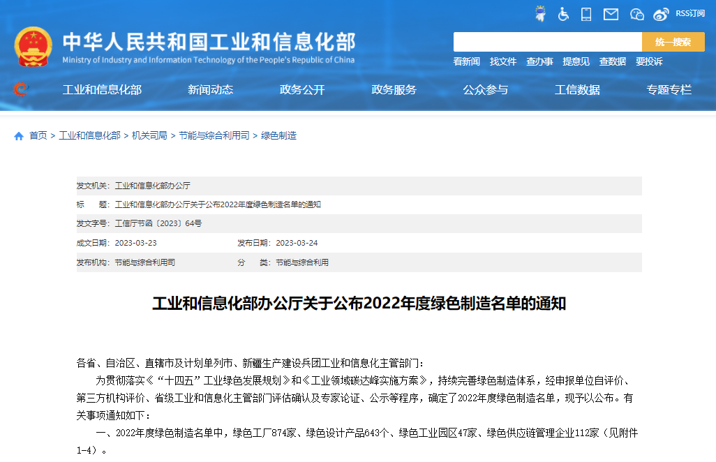 國家級“綠色工廠”創(chuàng)建活動是由工信部組織開展的全國性評選活動,旨在落實(shí)《“十四五”工業(yè)綠色發(fā)展規(guī)劃》和《工業(yè)領(lǐng)域碳達(dá)峰實(shí)施方案》,持續(xù)完善綠色制造體系,助力工業(yè)領(lǐng)域?qū)崿F(xiàn)碳達(dá)峰、碳中和目標(biāo)。入選企業(yè)必須滿足基礎(chǔ)設(shè)施、管理體系、能源投入、環(huán)境排放等多個(gè)指標(biāo)的高標(biāo)準(zhǔn)和嚴(yán)要求。