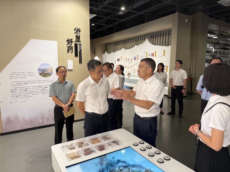 9月10日,高秉學一行先后走訪了“磐龍藥谷”農(nóng)業(yè)綜合體項目、江南藥鎮(zhèn)養(yǎng)生博覽館和“浙八味”特產(chǎn)市場。在磐龍藥谷,考察組聽取了項目關于集約化、數(shù)字化中藥材種植和三產(chǎn)融合發(fā)展模式的介紹,了解其在“稻藥輪作”和智慧農(nóng)事服務體系建設方面的實踐。在江南藥鎮(zhèn)養(yǎng)生博覽館,考察組體驗了中醫(yī)藥文化與現(xiàn)代科技融合的展示方式,并詳細了解省級中藥產(chǎn)業(yè)大腦在打通產(chǎn)業(yè)鏈數(shù)據(jù)、服務產(chǎn)銷對接方面發(fā)揮的作用。隨后,考察組調(diào)研了“浙八味”市場的經(jīng)營規(guī)模、質(zhì)量管控機制以及文旅業(yè)態(tài)融合發(fā)展情況。